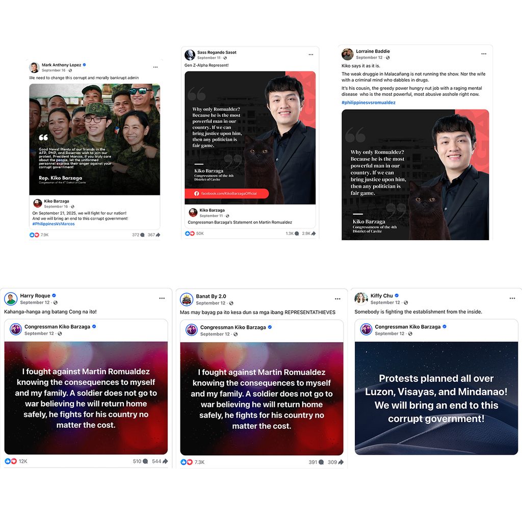 In these top-performing posts, Barzaga talked about high-conflict political drama, such as the controversy surrounding Leyte 1st District Representative Martin Romualdez and the September 21 protests. He also openly tags other politicians in his posts, creating an impression of boldness and confrontation that amplifies his online presence.