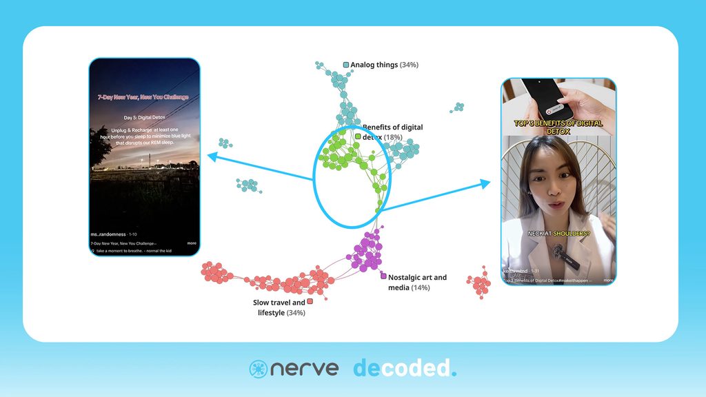 Around 18% of the TikTok posts in The Nerve’s dataset tackled the benefits of and tips for practicing digital detox.